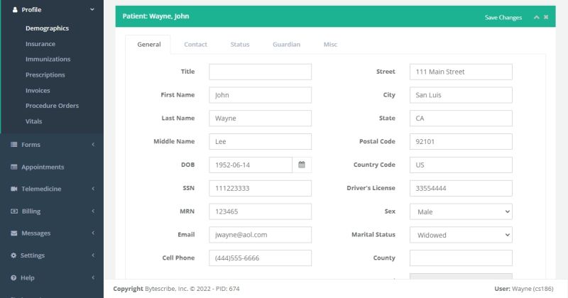 To enter or update your name, personal details, or contact information, you'll need to go to Profile > Demographics > Edit Patient. At the top of the page will be five options (General, Contact, Status, Guardian, and Misc). Enter or update personal information for each of these sections before clicking Save Changes.