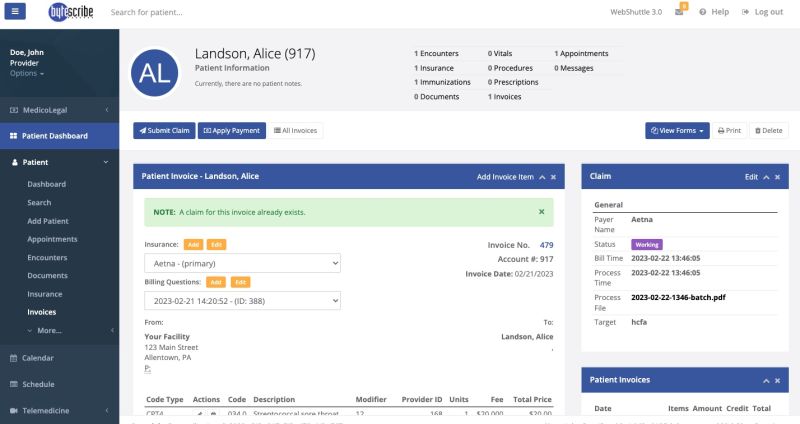 To be able to create an invoice, you must have something you are charging for in the first place, which will be a doctor's visit, or an Encounter. Refer to the Encounter section under the Patient Overview tab for a refresher on how to create an encounter.