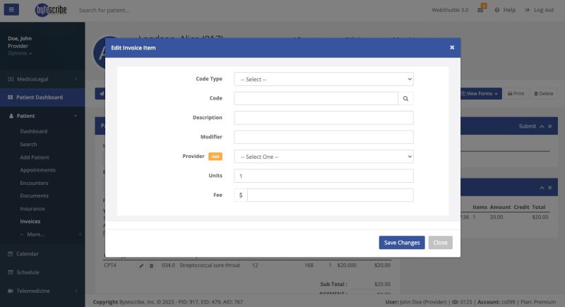 Upon accurately completing the billing information, proceed to the Add Invoice Item section. Here, detail the services provided to the patient, ensuring the information reflects the treatment received. Once all entries are made, click Save Changes to record the invoice item. This step is vital for maintaining accurate and comprehensive billing records.