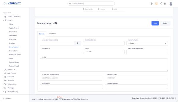 The Patient Immunizations page in VEHRDICT is a powerful, user-friendly tool for tracking, updating, and reviewing a patient’s full vaccination history. Each entry includes essential details such as vaccine type, dosage, date, and provider information. The system proactively alerts providers about upcoming vaccines and booster requirements, helping to maintain full schedule compliance.
