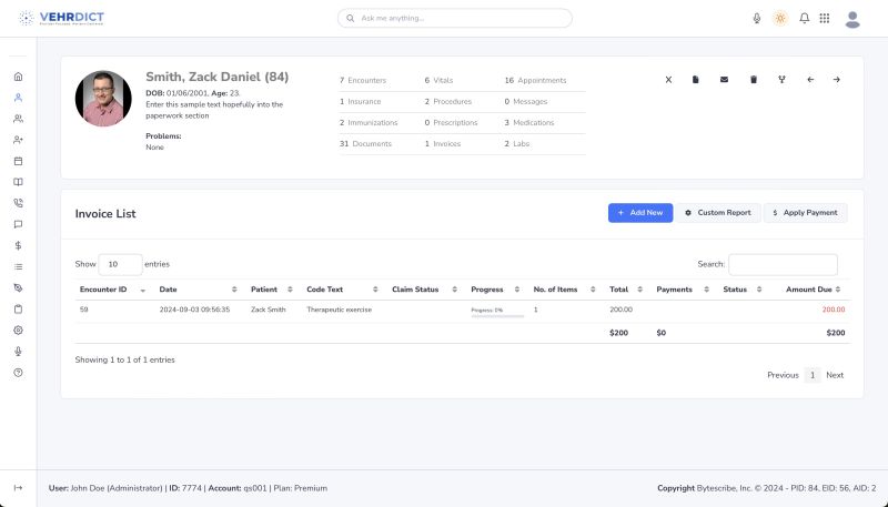 VEHRDICT offers an extensive suite of features designed for optimal practice management, including patient charting, clinical documentation, medical billing, telemedicine, and a patient portal, all integrated with ePrescription capabilities. Each function is optimized for speed and efficiency. Our innovative AI technology automatically transcribes dictation and telemedicine calls, summarizing the key information and seamlessly integrating it into the patient’s chart, thereby streamlining workflows and enhancing data accuracy and accessibility.