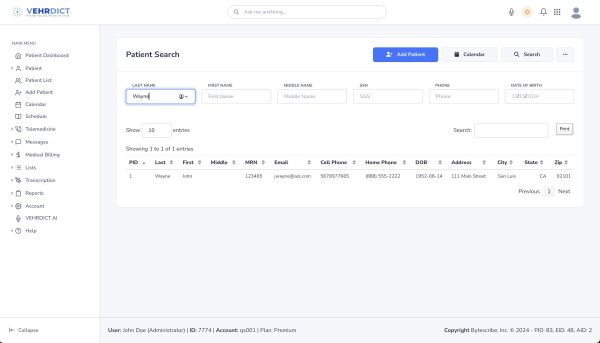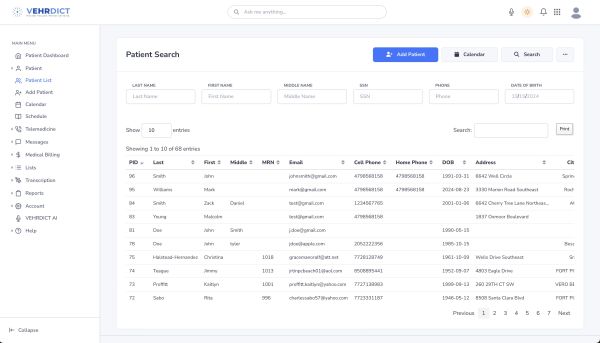 Welcome to VEHRDICT's Patient Search support page. The Patient Search feature revolutionizes how providers and staff access patient information with a streamlined, intuitive interface.