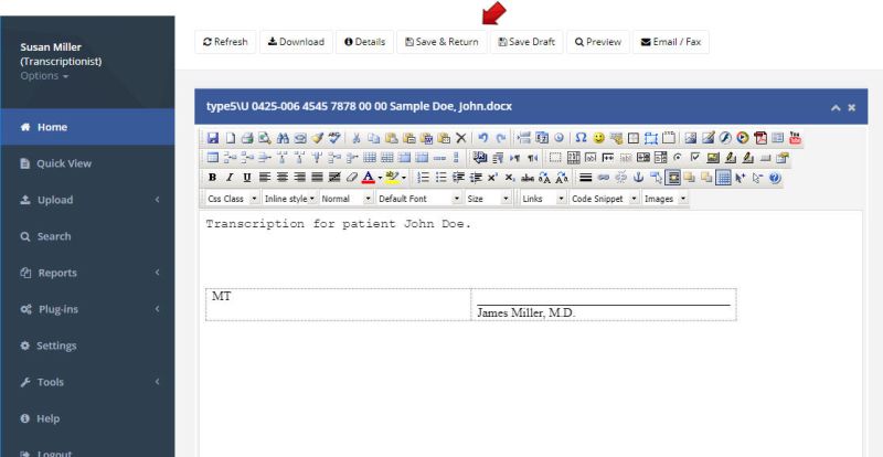 Audio files can be transcribed into WebShuttle directly online. WebShuttle has a fully functional online word processor that is compatible with Microsoft Word. Transcriptionists can type directly into the word processor and the documents are saved as Microsoft .doc files.