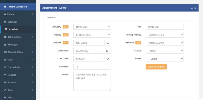 • Click on the appointment scheduled and click the yellow Start Encounter button.