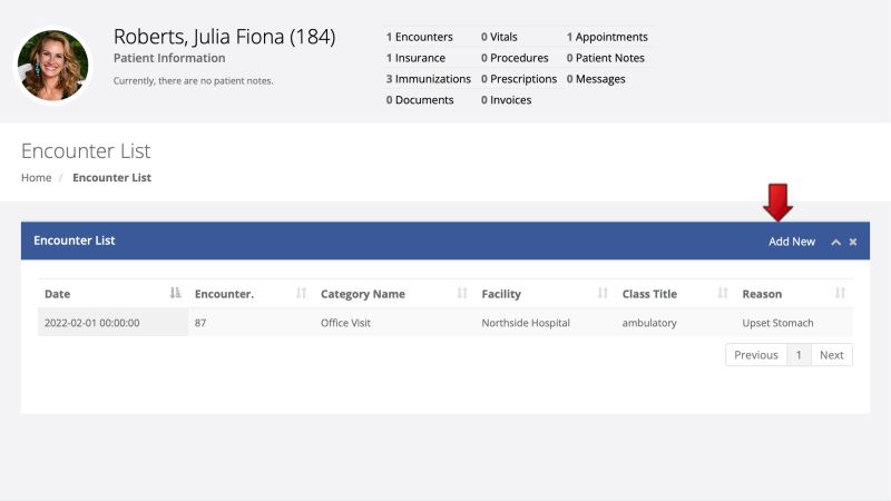 • Select Add New to create the new encounter.