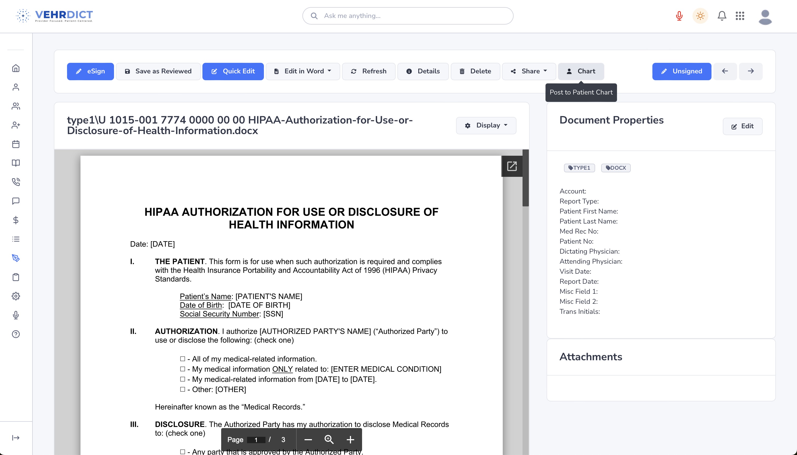 - Easy Access – Search and filter tools help you locate files quickly within a patient’s chart.